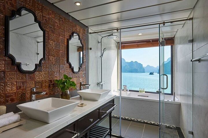We offer a 2-day journey exploring Ha Long Bay and Lan Ha Bay. The itinerary covers must-visit spots like Sung Sot Cave, Ti Top Island, Trinh Nu Cave, and Tuan Chau Island. Accommodations are modern and spacious, promising a comfortable stay.
