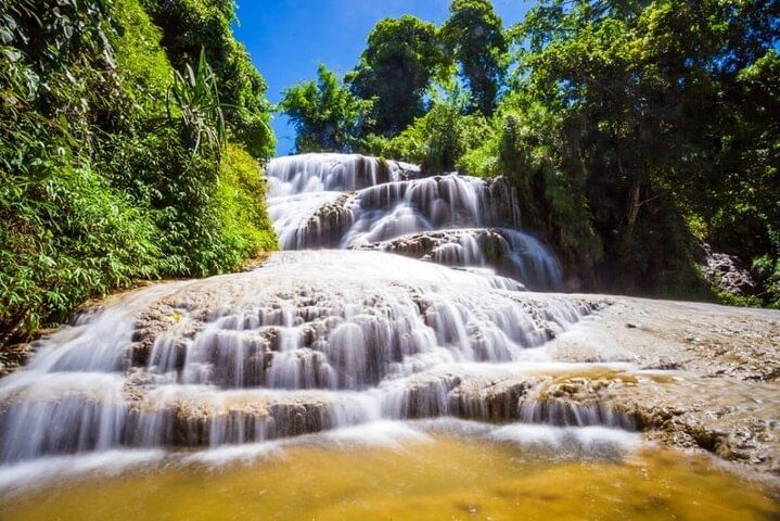 This Pu Luong Nature Reserve adventure features trekking through remote villages and rice terraces, cave exploration, a swim at Hieu Waterfall, and bamboo rafting past giant water wheels.
